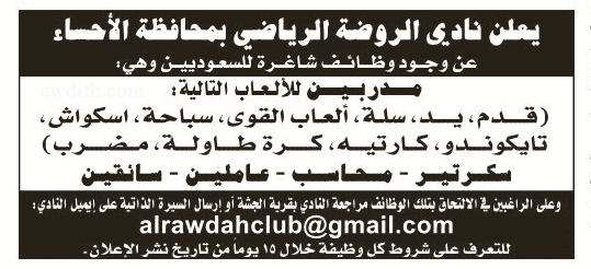 وظائف في نادي الروضة الرياضي