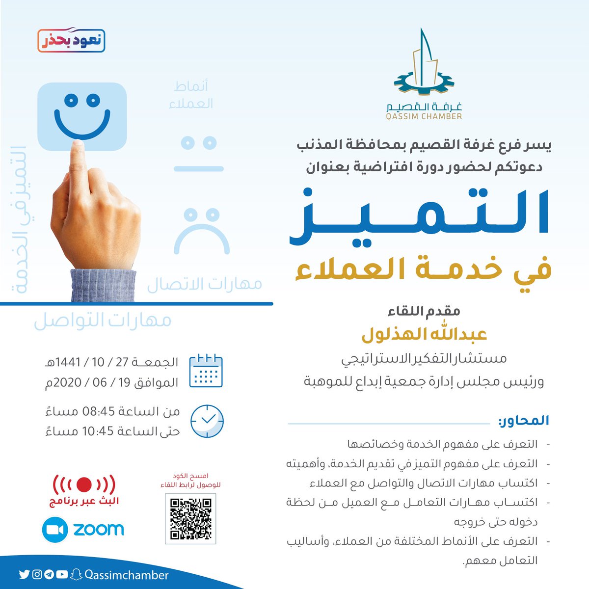 اعلان غرفة القصيم دورة افتراضية عن بُعد بعنوان التميز في خدمة العملاء