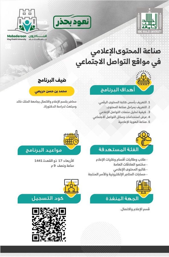 اعلان جامعة الملك خالد دورات تدريبية عن بُعد بمجال التخطيط والإعلام