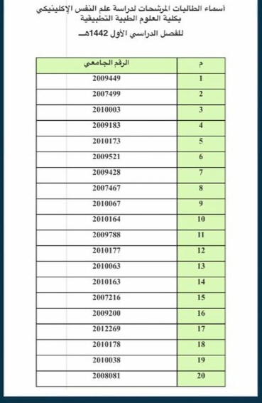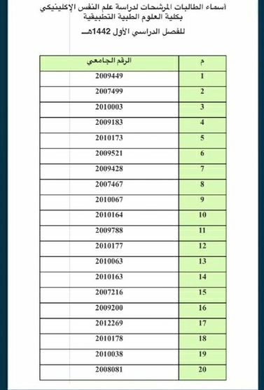 اسماء المرشحين والمرشحات لتخصـص علـم النفـس الاكلينيكي بكليـة العلـوم الطبيـة التـطبيقيـة