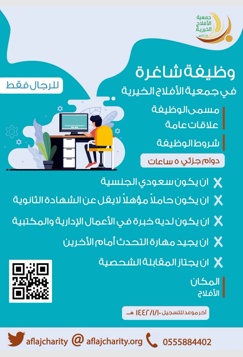 مطلوب موظف علاقات عامة في جمعية الأفلاج الخيرية