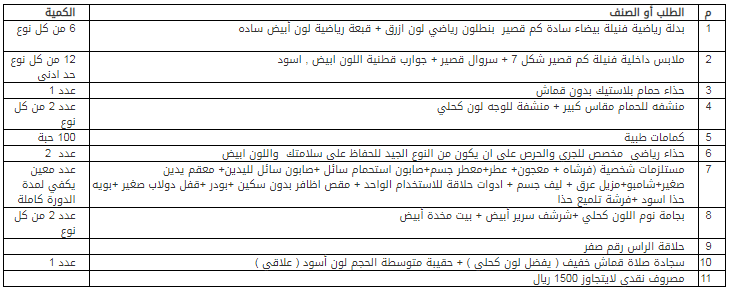 – الحضور للمركز بلبس الرياضة المطلوب منك في فقرة (1) من المتطلبات لدخول الدورة .
