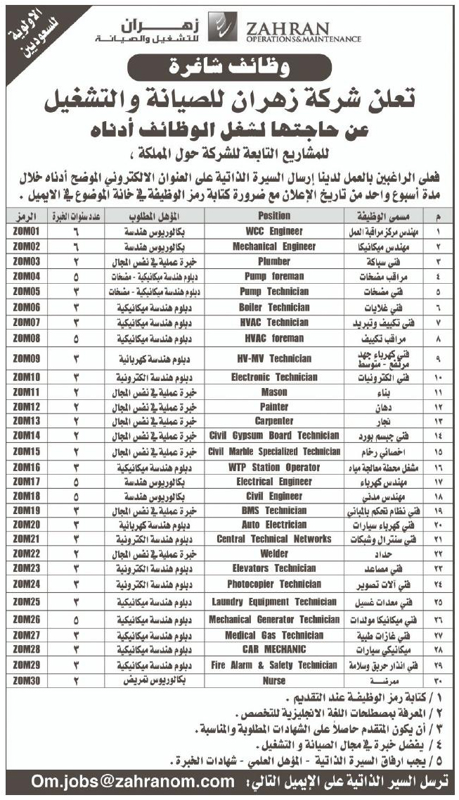 4- يفضّل خبرة في مجال الصيانة والتشغيل.