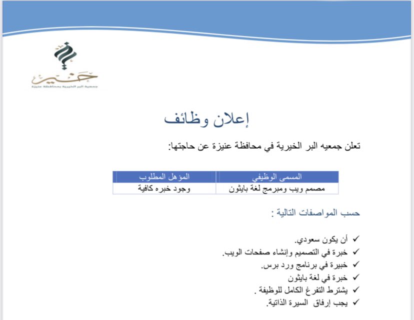 مطلوب مصمم ويب في جمعية البر الخيرية
