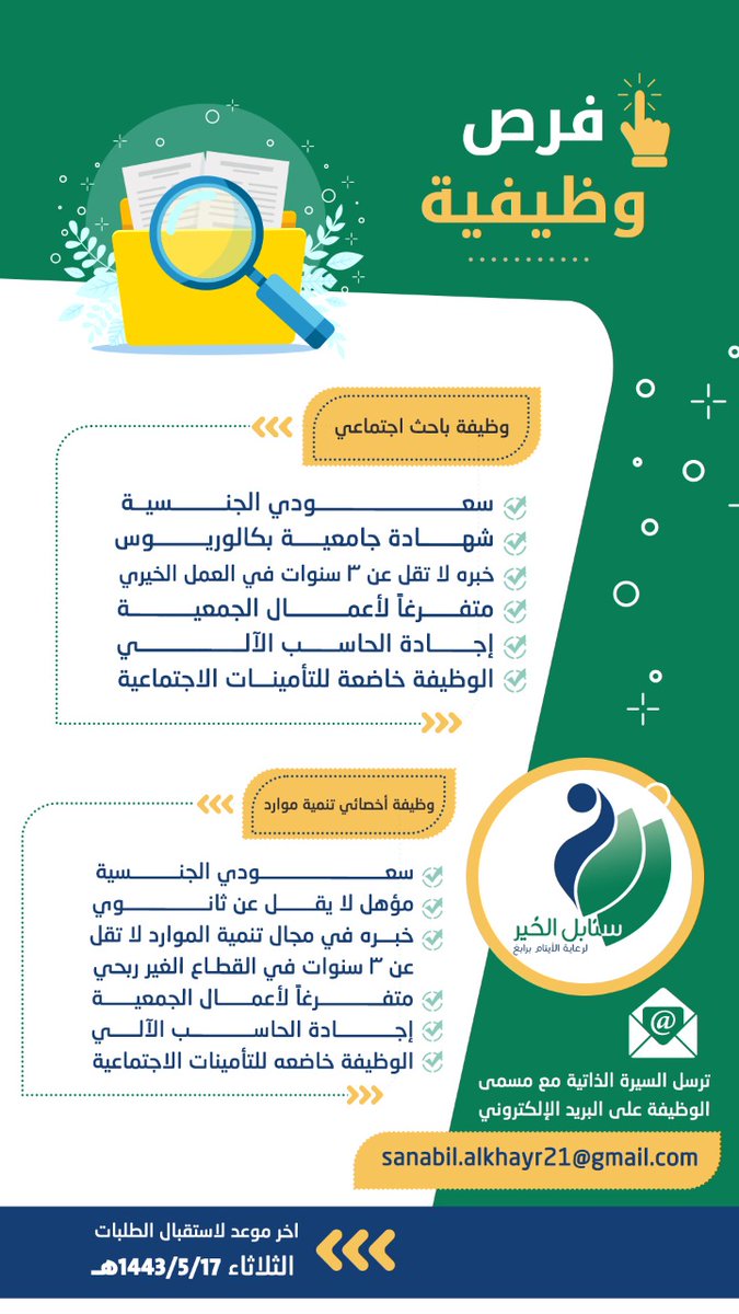 وظائف لحملة الثانوية في جمعية سنابل الخير للأيتام في رابغ