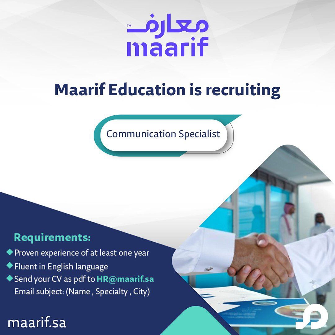 وظائف بمجال الاتصالات في شركة معارف للتعليم بمدينة الرياض المسمى الوظيفي أخصائي اتصالات الشروط اضغط هنا للتقديم HR@maarif.com.sa #وظائف_الرياض