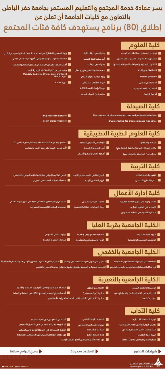 جامعة حفر الباطن تعلن إطلاق (80) برنامج يستهدف كافة فئات المجتمع