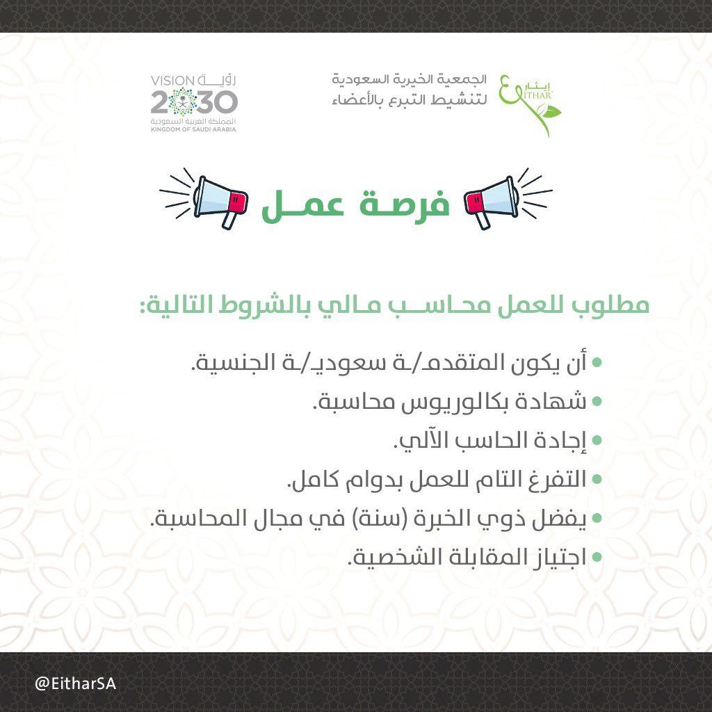 وظائف للجنسين في جمعية ايثار بالدمام