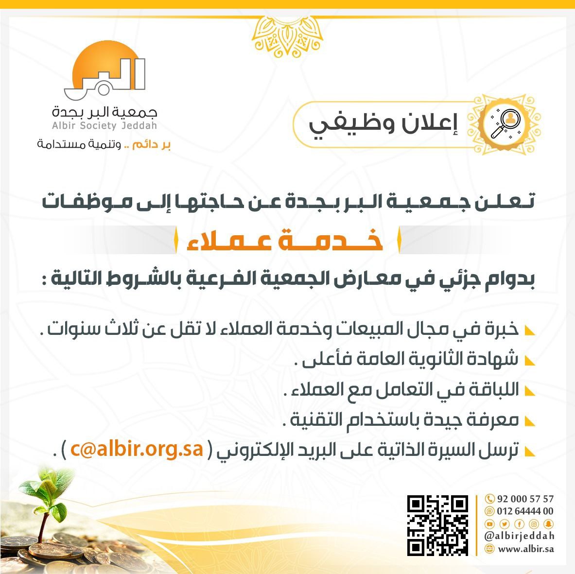 مطلوب موظفات خدمة عملاء في جمعية البر بجدة الاعلان والتفاصيل: اضغط هنا
