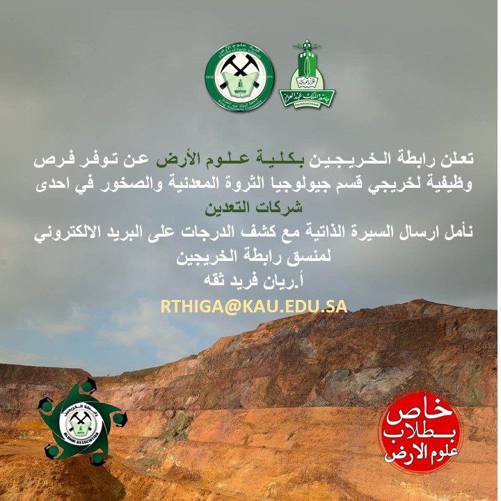 وظائف لخريجي قسم جيولوجيا الثروة المعدنية في كلية علوم الأرض