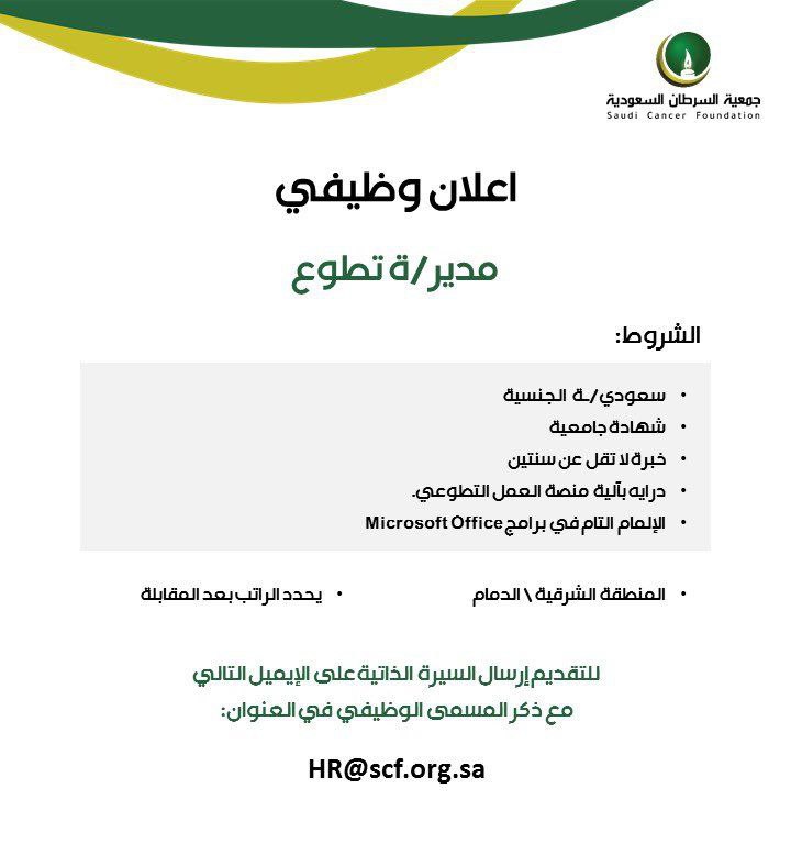وظائف للجنسين في جمعية السرطان السعودية بالدمام