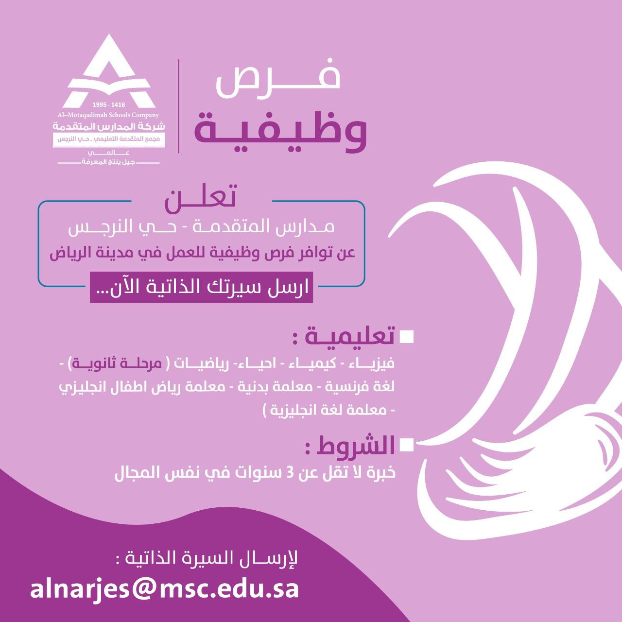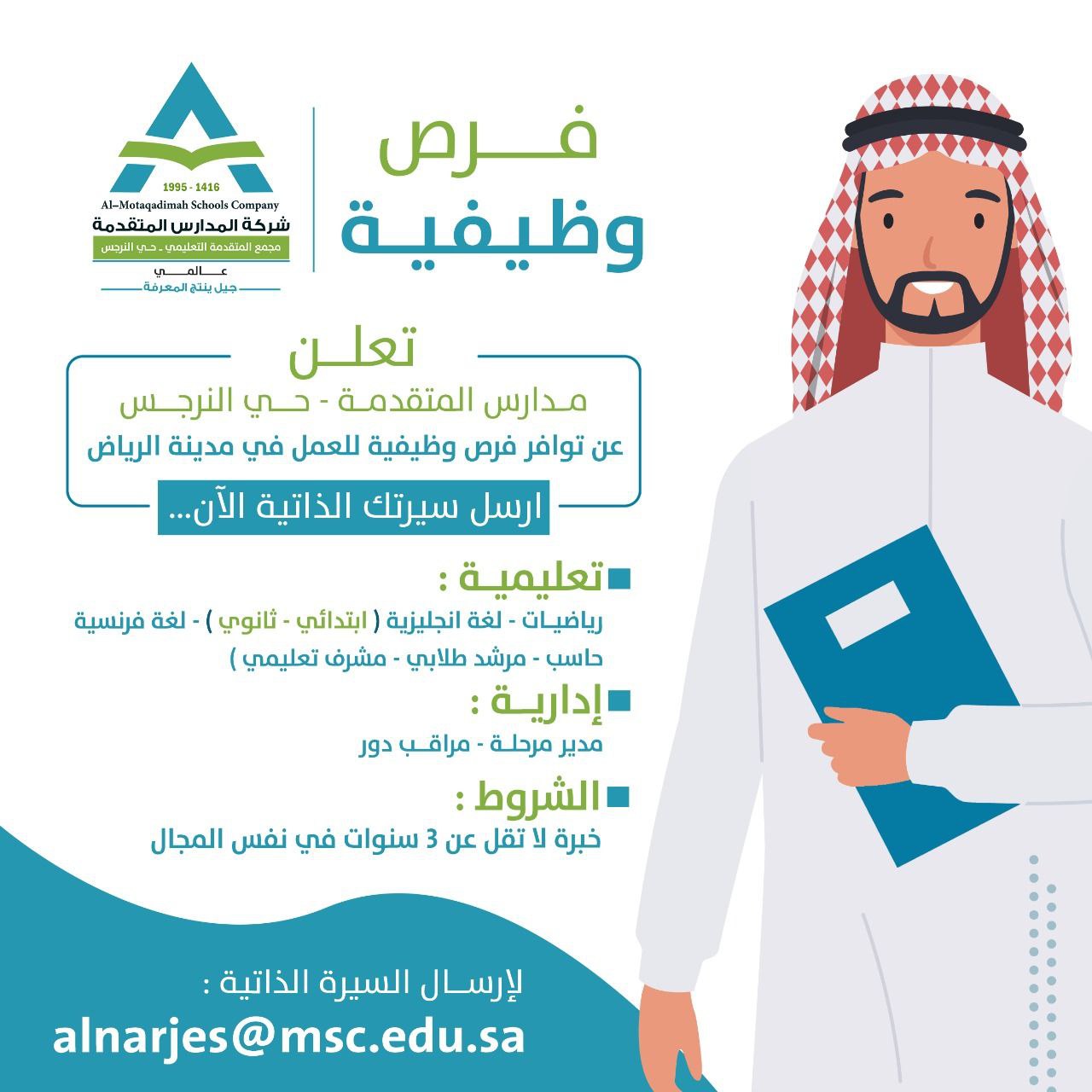 وظائف تعليمية وإدارية للجنسين في المدارس المتقدمة بالرياض