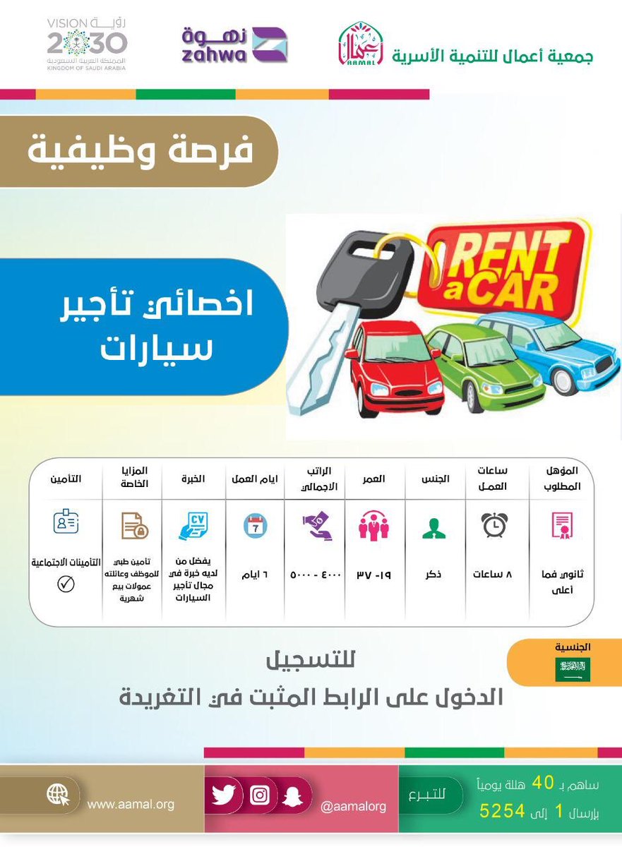 وظائف للجنسين لحملة الثانوية في جمعية أعمال للتنمية الأسرية